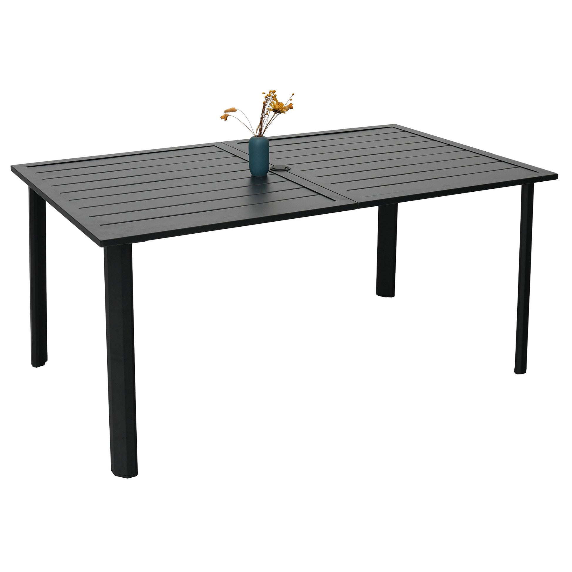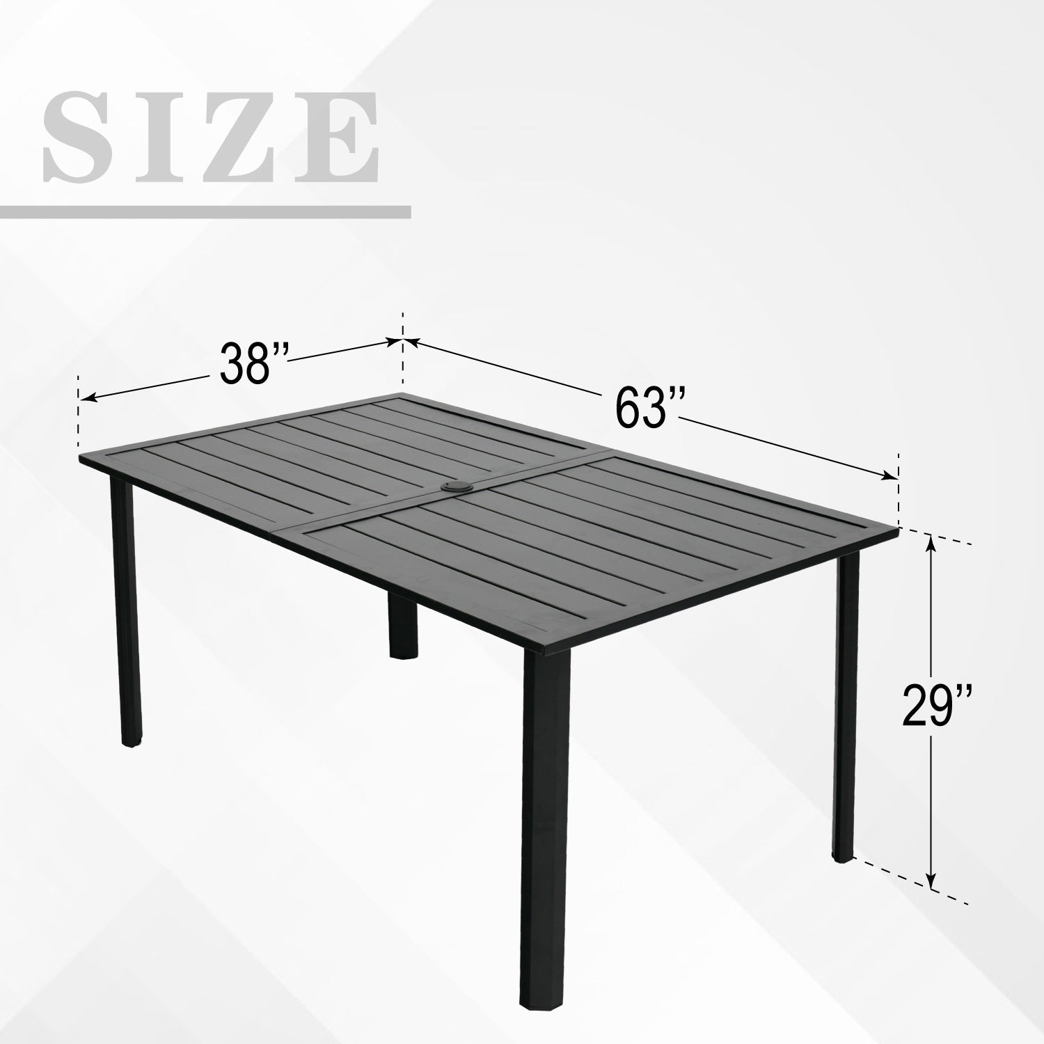 63" x 38" x 29" Rectangle Patio Dining Table with Umbrella Hole