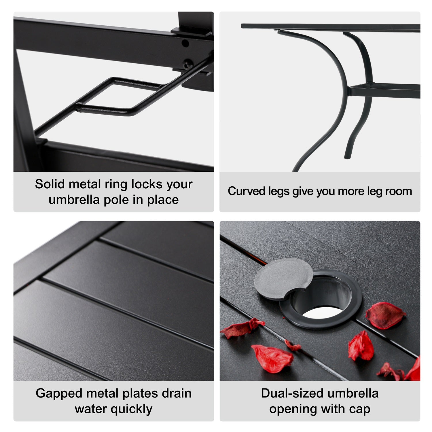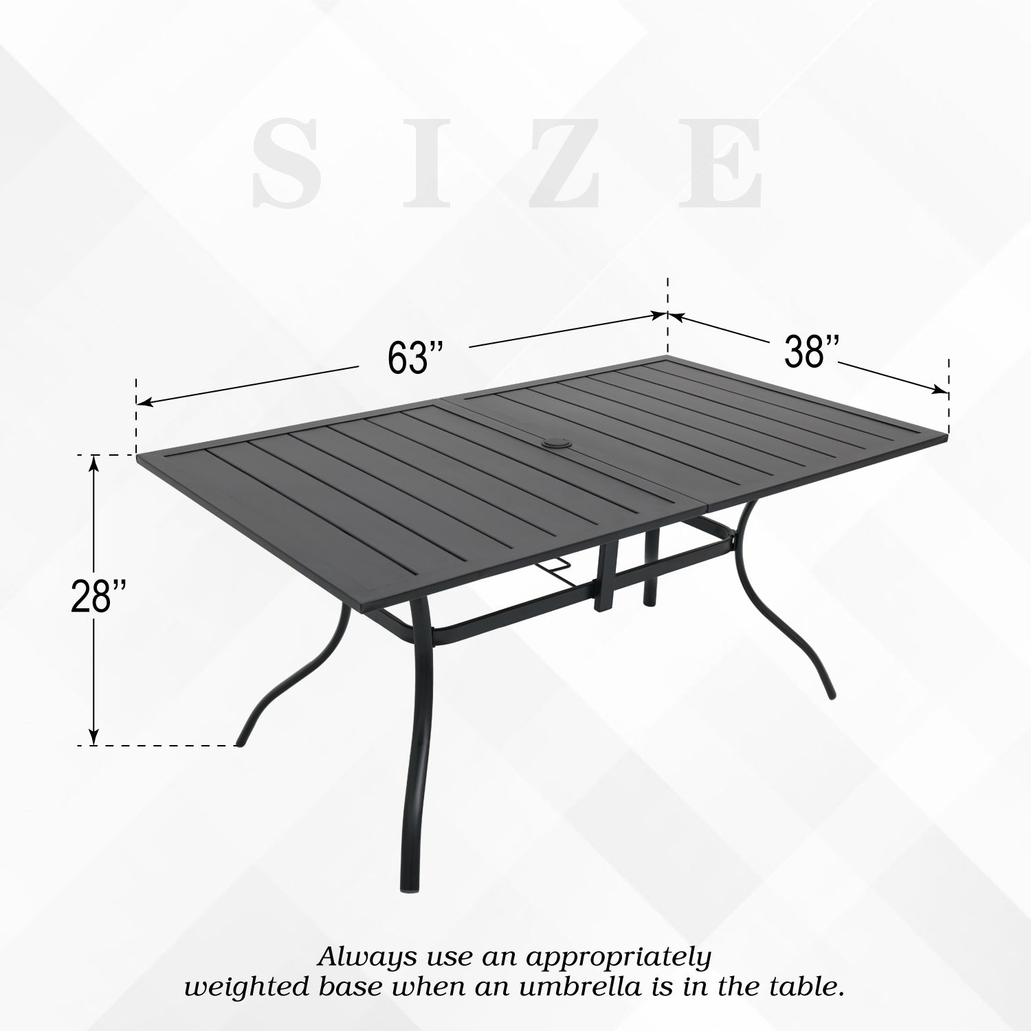 63" x 38" Rectangle Patio Dining Table with Umbrella Hole