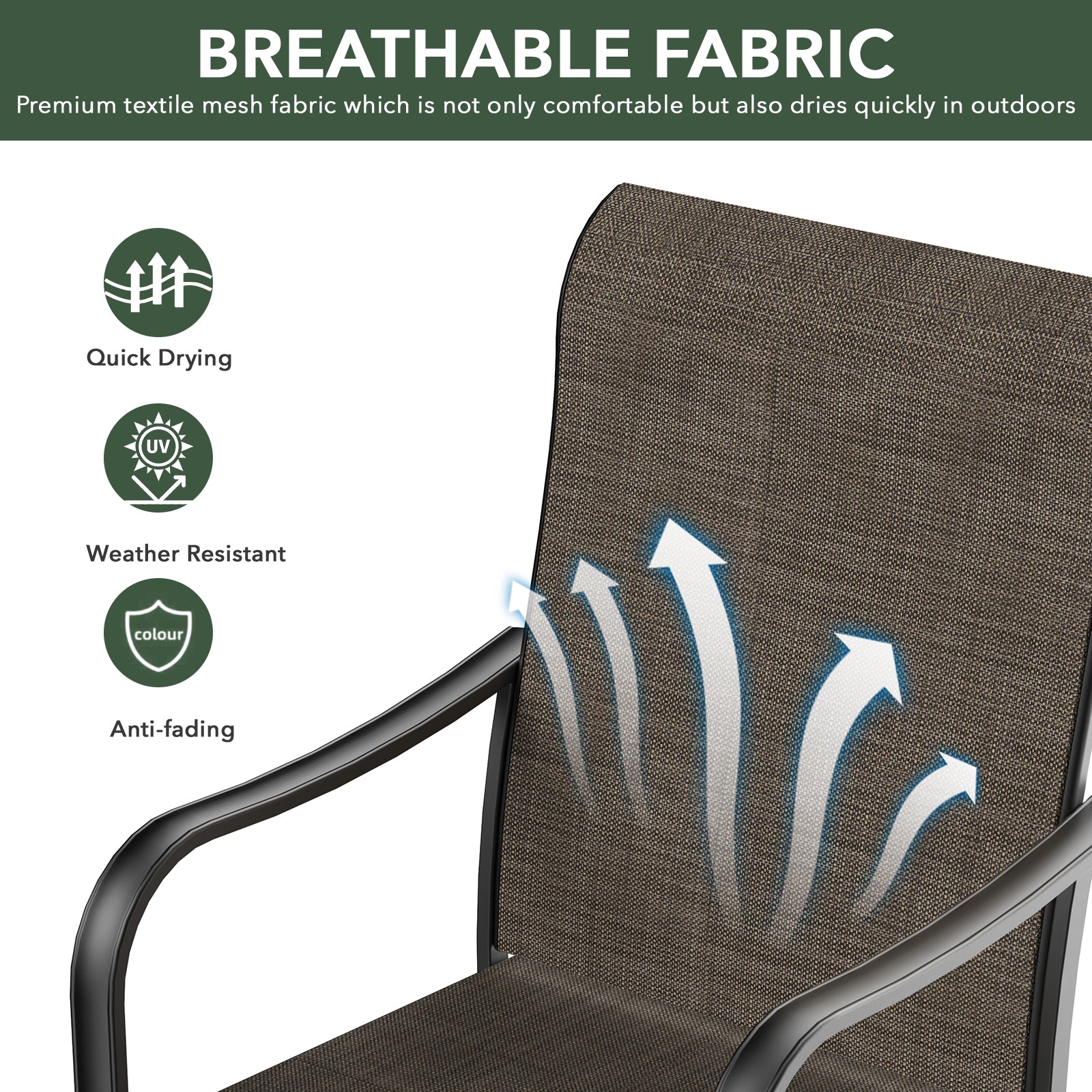 Chair Frame Suface: E-Coating (Rust & Weather Resistant);